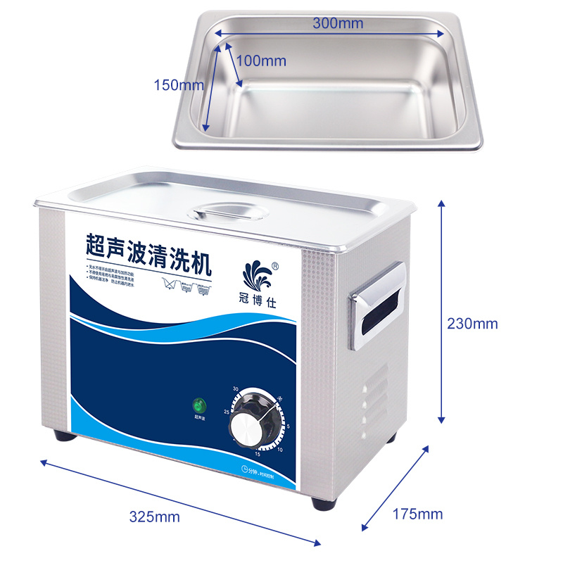 2.机器内槽加入清洗液,把装有物品的清洗蓝放入机器内槽(眼镜清洗可无需放篮子上);