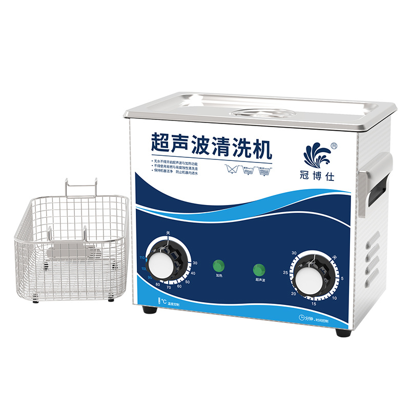 2.机器内槽加入清洗液,把装有物品的清洗蓝放入机器内槽(眼镜清洗可无需放篮子上);