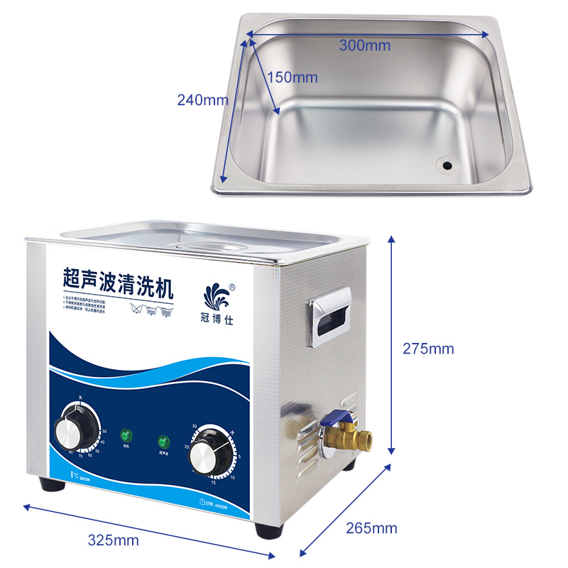 2.机器内槽加入清洗液,把装有物品的清洗蓝放入机器内槽(眼镜清洗可无需放篮子上);