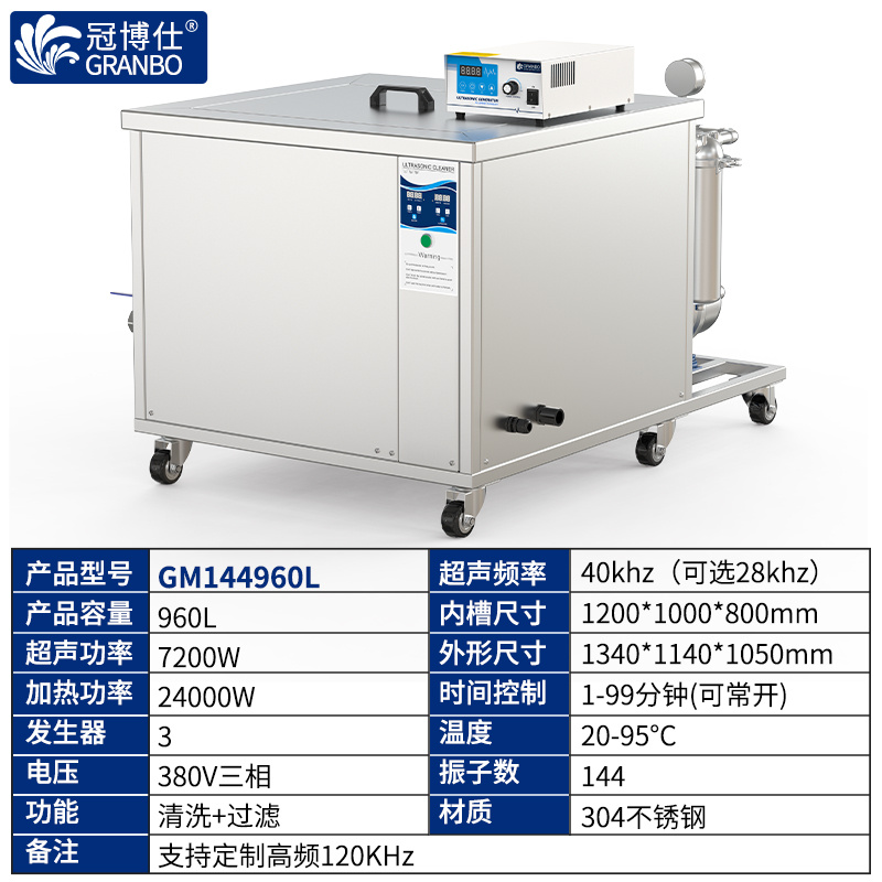 冠博仕GM144960L单槽过滤循环超声波清洗机 | 960L/7200W | 可清洗三通配件、铜铝合金小配件、不锈钢冲压件