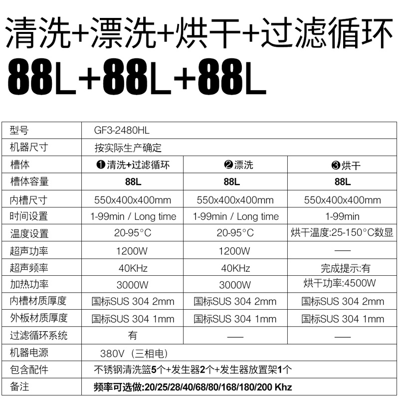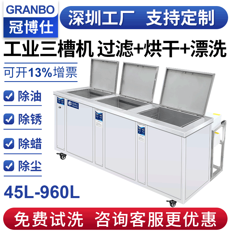 - 三槽工艺:超声波清洗+过滤>漂洗>烘干其它等工艺可定制;