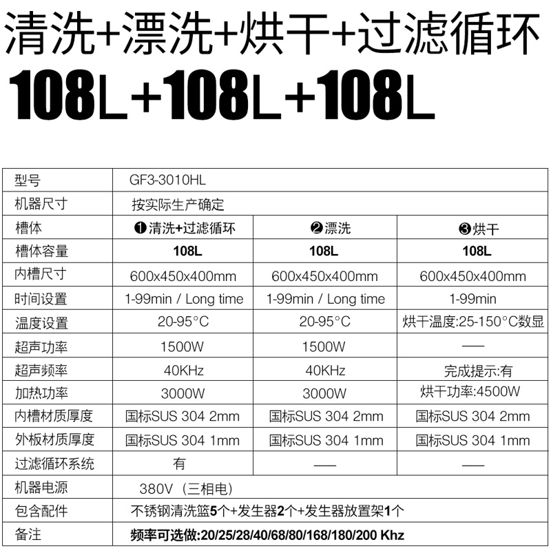 - 三槽工艺:超声波清洗+过滤>漂洗>烘干其它等工艺可定制;
