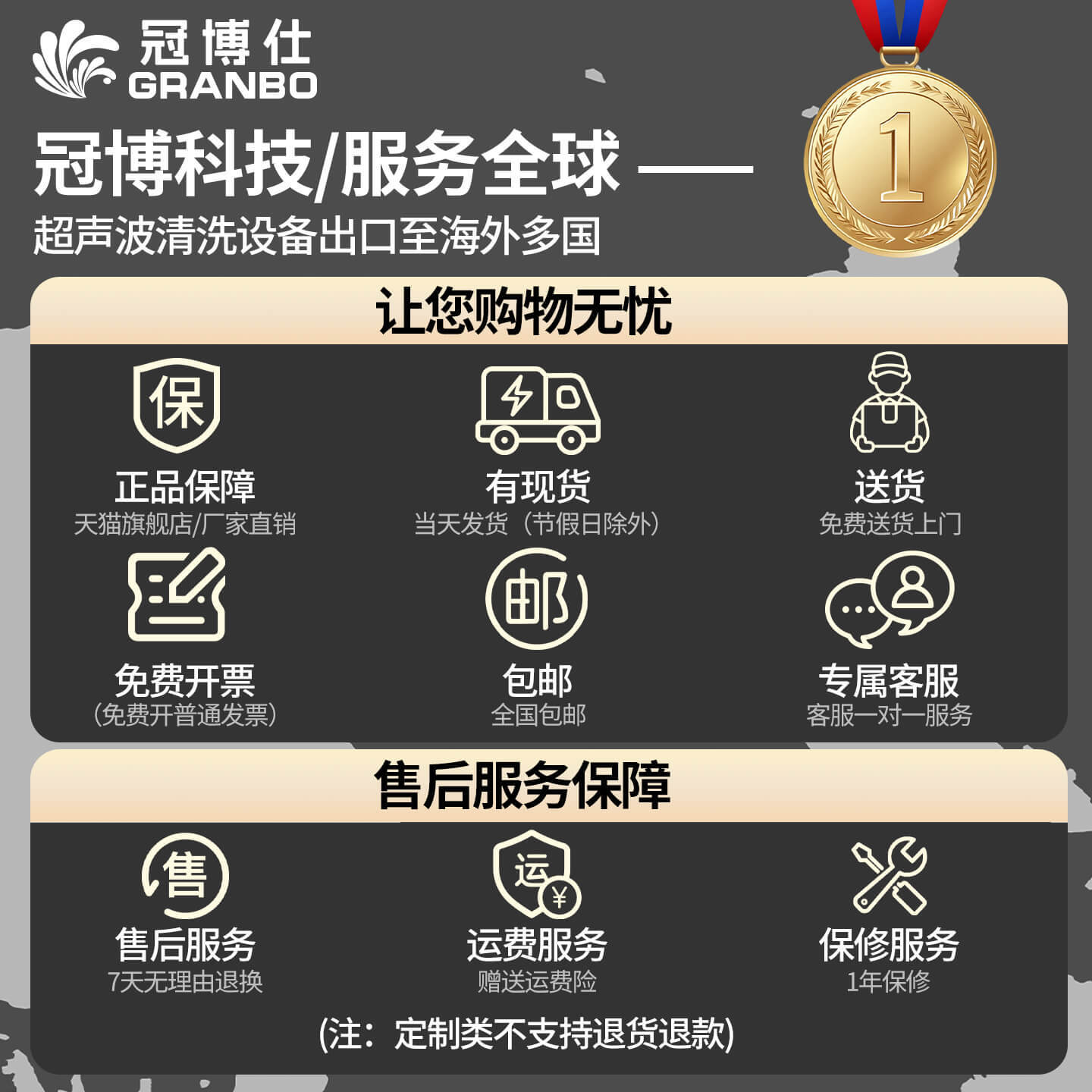 - GM系列台式超声波清洗机建议使用水溶性清洗剂,严禁使用强酸性或易燃性清洗剂。如需使用溶剂型清洗剂切勿加温,并且工作约80分钟后务必歌息一段时间后再启动工作。