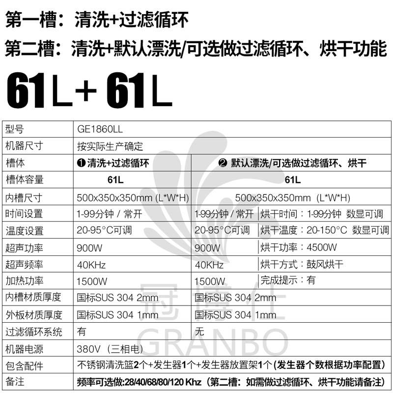 - 双槽工艺:超声波清洗+过滤+漂洗,烘干等工艺可定制