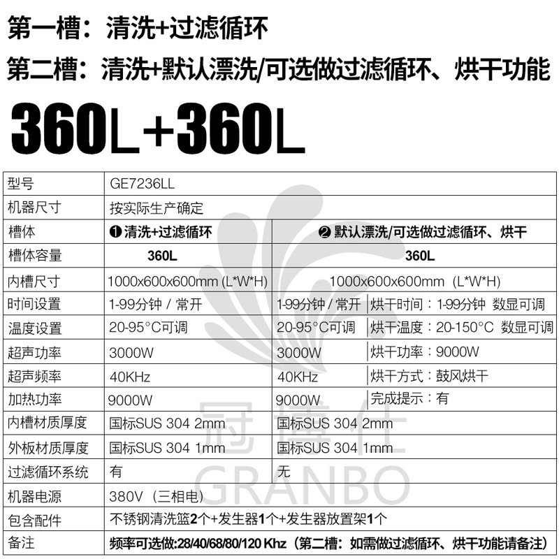- 双槽工艺:超声波清洗+过滤+漂洗,烘干等工艺可定制