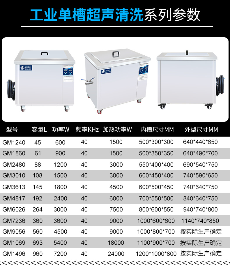 冠博仕GM3613超声波清洗机|145L/1800W 可调|工业单槽机 支持定制