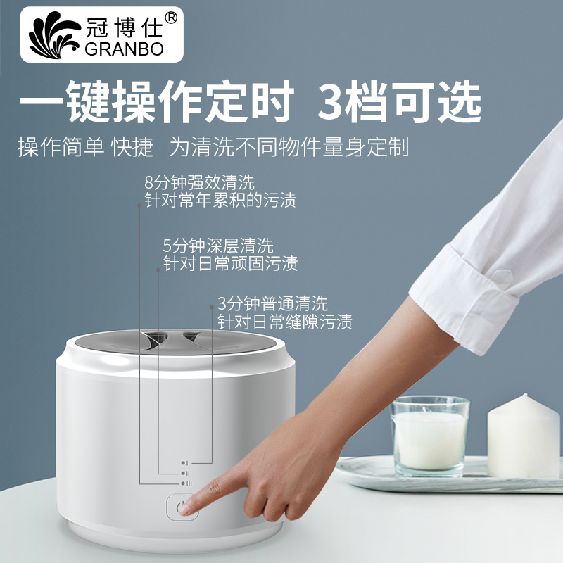2.机器内槽加入清洗液,把装有物品的清洗蓝放入机器内槽(眼镜清洗可无需放篮子上);