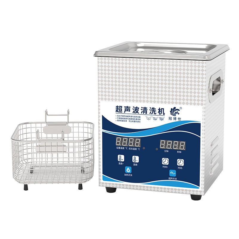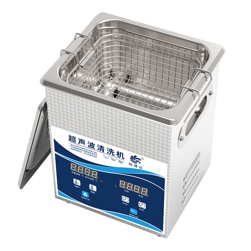 2.机器内槽加入清洗液,把装有物品的清洗蓝放入机器内槽(眼镜清洗可无需放篮子上);