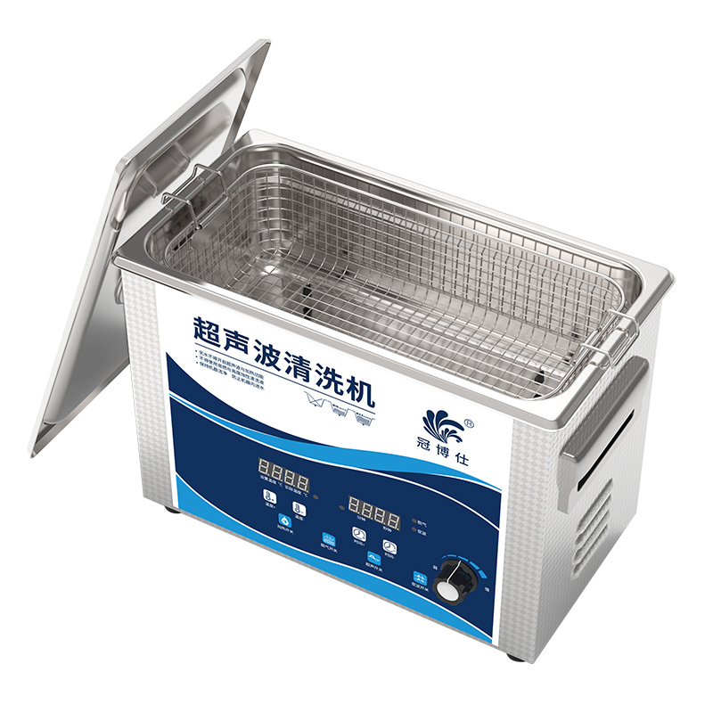 2.机器内槽加入清洗液,把装有物品的清洗蓝放入机器内槽(眼镜清洗可无需放篮子上);